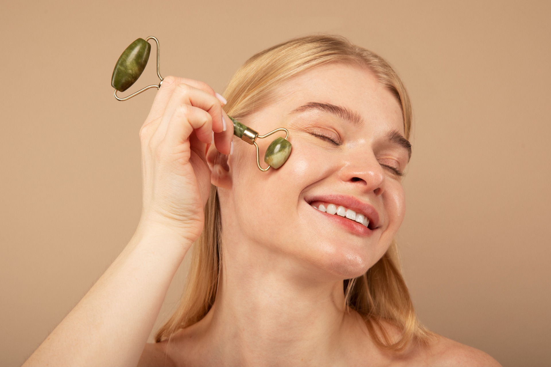 Práce s Guasha válečkem zaměřená na okamžité prokrvení a vyhlazení jemných vrásek.